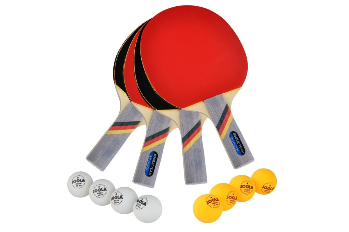 Набір для настільного тенісу Joola Team School - це набір із 4 ракеток Team School , призначений для початківців і активних гравців, а також для шкіл. Ракетки відрізняються відмінною швидкістю і контролем. Ручка ергономічної форми ідеально лежить в руці. У набір також входить 4 білих і 4 помаранчевих кульки. Набір Joola Team School поміщений в практичну прозору упаковку.