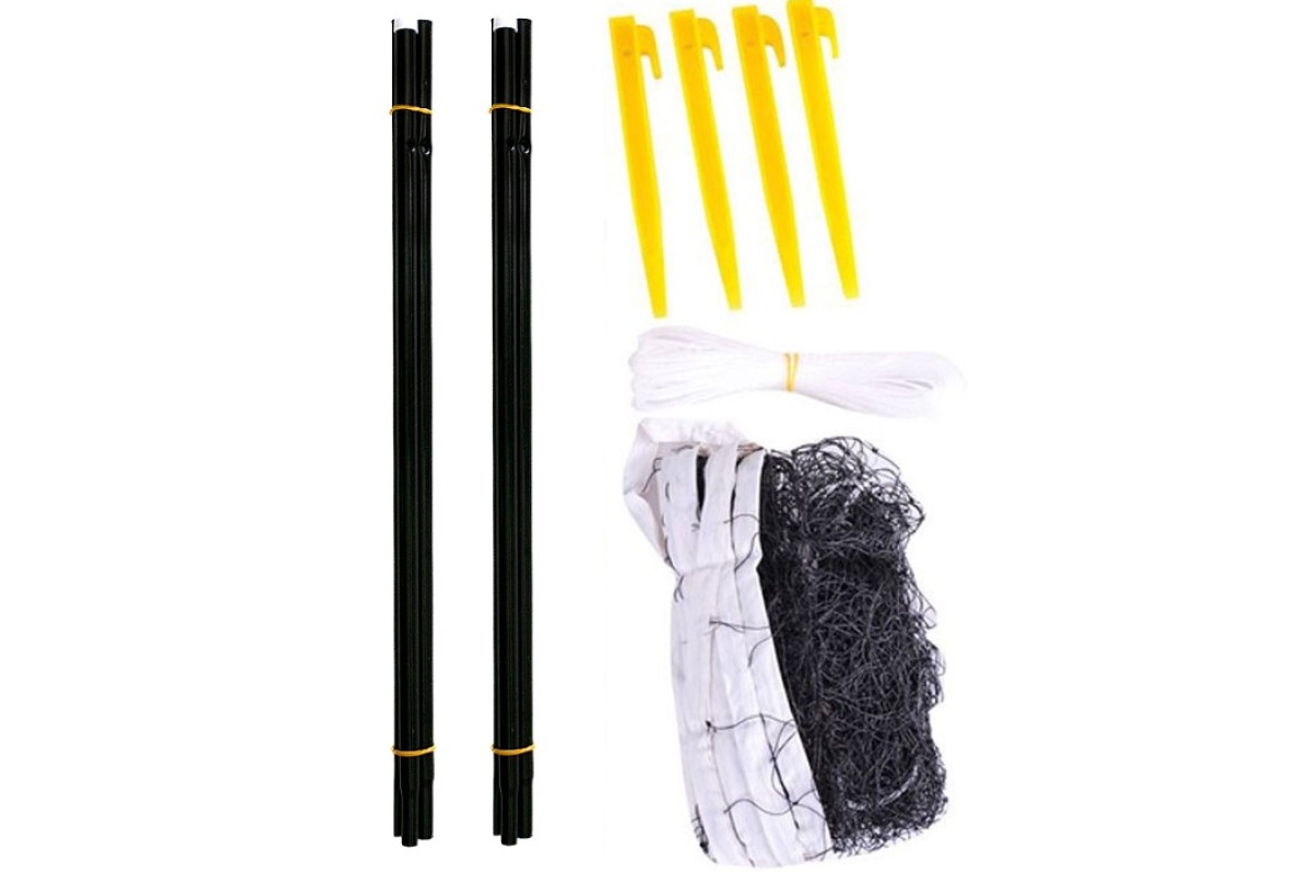 - У комплект сітки також входять кріпильні шпильки, мотузка та стовпи