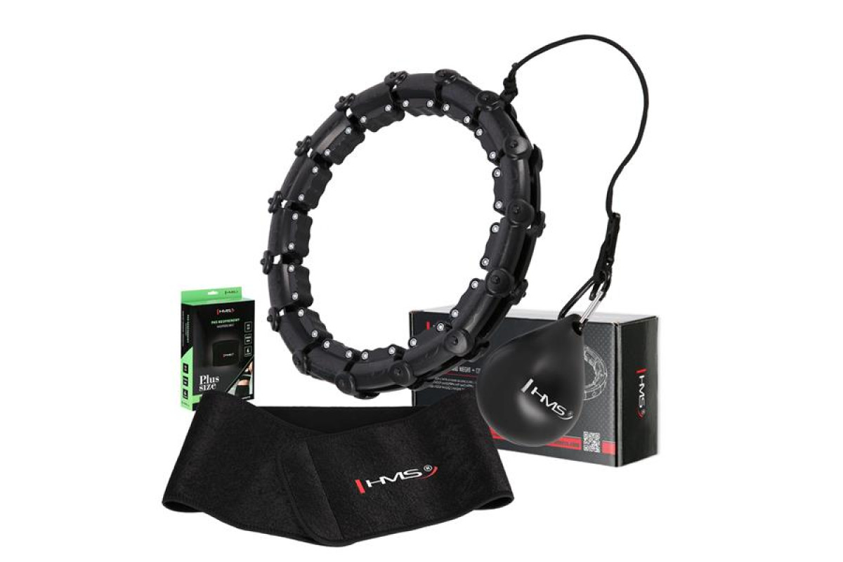 КОМПЛЕКТ HULA HOOP HHW02 ЧОРНИЙ З ОБтяжувачем HMS + ПІДТРИМКА НА ТАЛІЇ BR163 ЧОРНИЙ ПЛЮЗ РОЗМІР