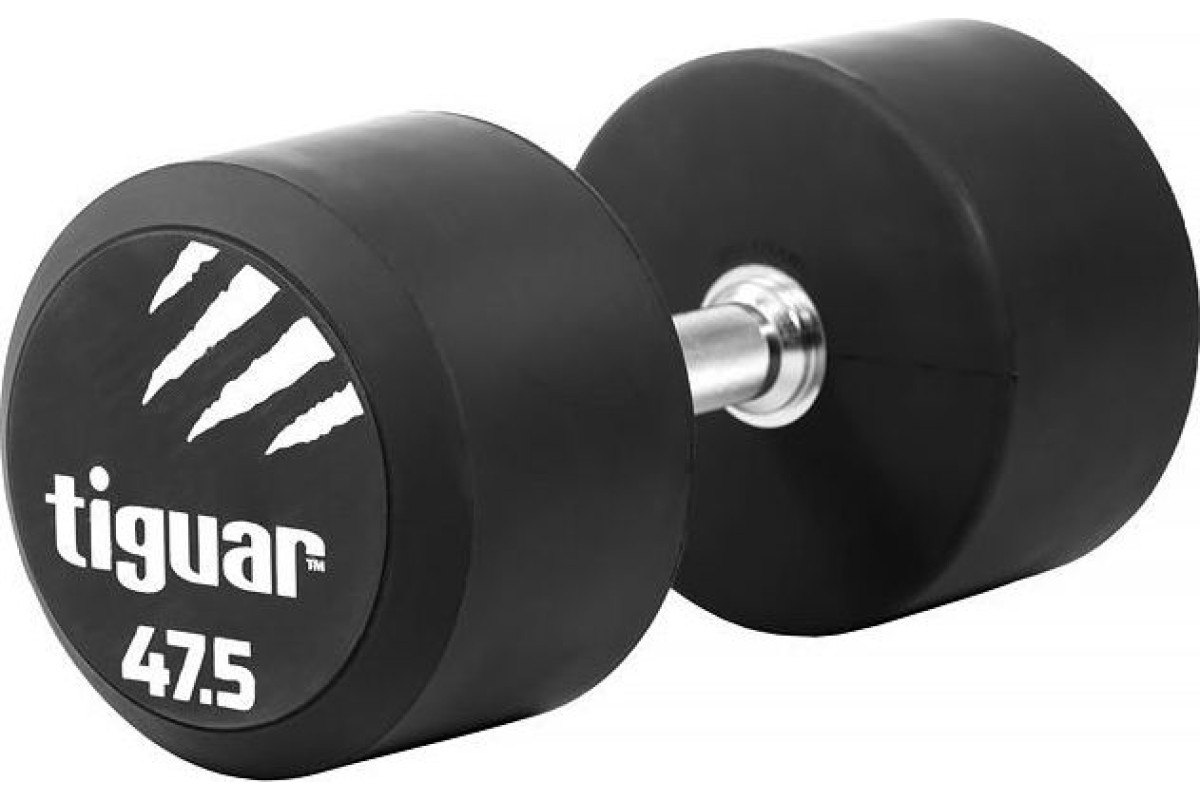 Прогумовані гантелі можуть бути повністю або частково покриті гумою, залежно від ваги. Важчі моделі мають гуму тільки на кінцях. Таке рішення дозволяє захистити підлогу й обладнання від пошкоджень. Гантелі Tiguar виготовлені з міцного, високоякісного поліуретану PU, стійкого до механічних пошкоджень. Лінійка PU гантелей tiguar має прямо горлові бруси однакової довжини – 15,2 см – і рифлену поверхню, завдяки чому поліуретанові гантелі Tiguar гарантують надійний хват під час виконання вправи незалежно від обраної ваги.