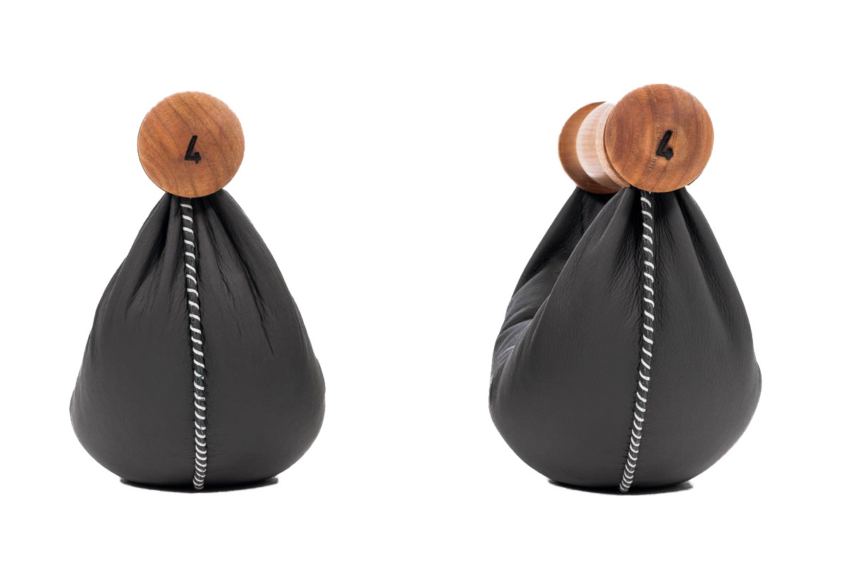 Гантелі з масиву дерева і зшитої вручну натуральної шкіри.