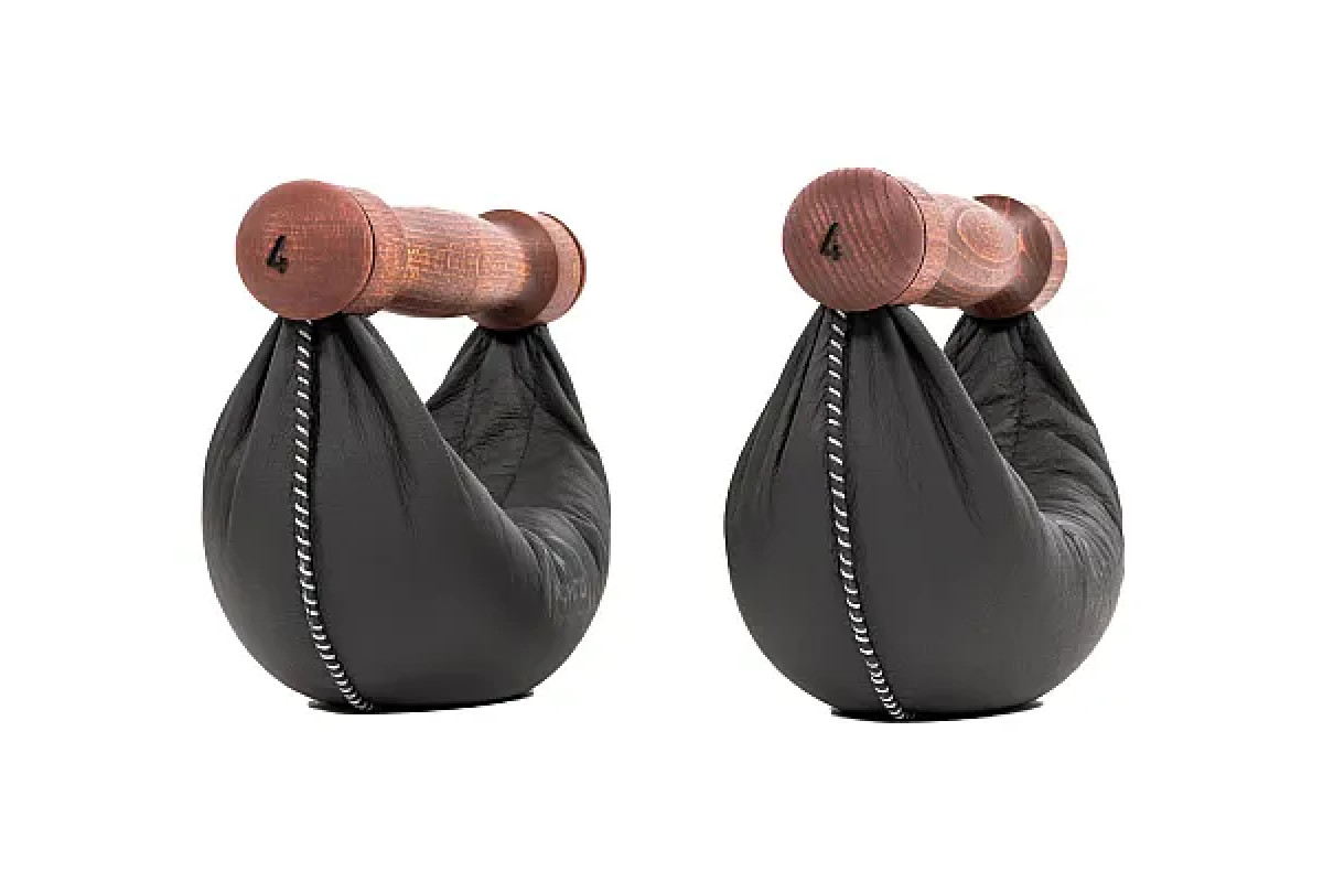 Гантелі з масиву дерева і зшитої вручну натуральної шкіри