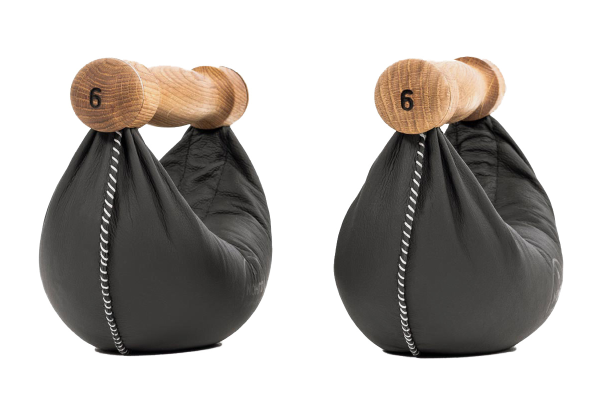 Гантелі з масиву дерева і зшитої вручну натуральної шкіри.