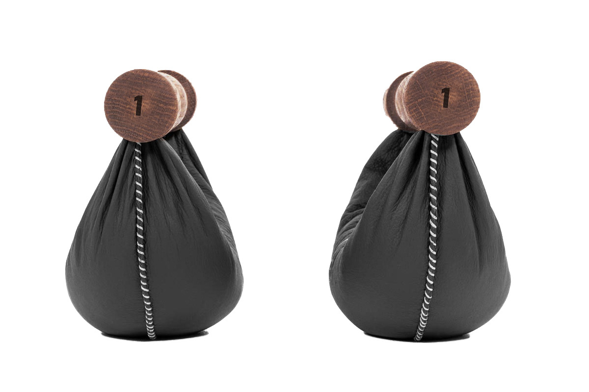 Гантелі з масиву дерева і зшитої вручну натуральної шкіри.
