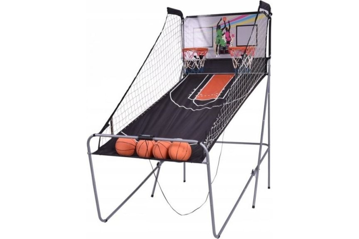 Баскетбольний ігровий автомат. Відмінна розвага надовго - баскетбольний ігровий автомат пропонує 8 різних режимів гри, що гарантує чудове задоволення на довгий час. Набір є ідеальною аркадною грою для дітей і дорослих. Датчики руху - машина має вбудовані датчики руху та рідкокристалічні дисплеї, які надзвичайно спрощують відстеження результатів. Звукові ефекти та кольорове світло створюють неповторну атмосферу гри - набір виготовлений з високоякісної сталі, плити МДФ і пластику, що гарантує неперевершену міцність і довговічність - завдяки складній конструкції Гра надзвичайно зручна і проста в зберіганні. Легка збірка - гру дуже легко зібрати. Всі елементи, необхідні для встановлення, входять у комплект. Детальні дані. Рекомендована кількість гравців: до 4 осіб. Живлення: 3 батарейки типу АА (не входять в комплект) Матеріали: сталь, МДФ, матеріал ПП. Розміри. Ширина: 107 см. Глибина: 202 см. Висота: 205 см. Вага: 17 кг; машина баскетбольна 4 м'ячі.