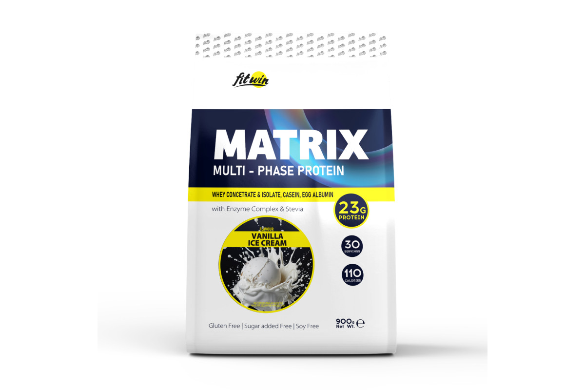 FitWin Matrix – це ультрафункціональний протеїновий комплекс, який забезпечує вас високоякісним білком у кожній порції. MATRIX містить ключові джерела білка: концентрат сироваткового білка, міцелярний казеїн, яєчний альбумін та ізолят сироваткового білка, що забезпечують тривале насичення м'язів після тренування. Природні ферменти (папаїн, бромелайн, лактаза) додаються кращого засвоєння білків організмом.