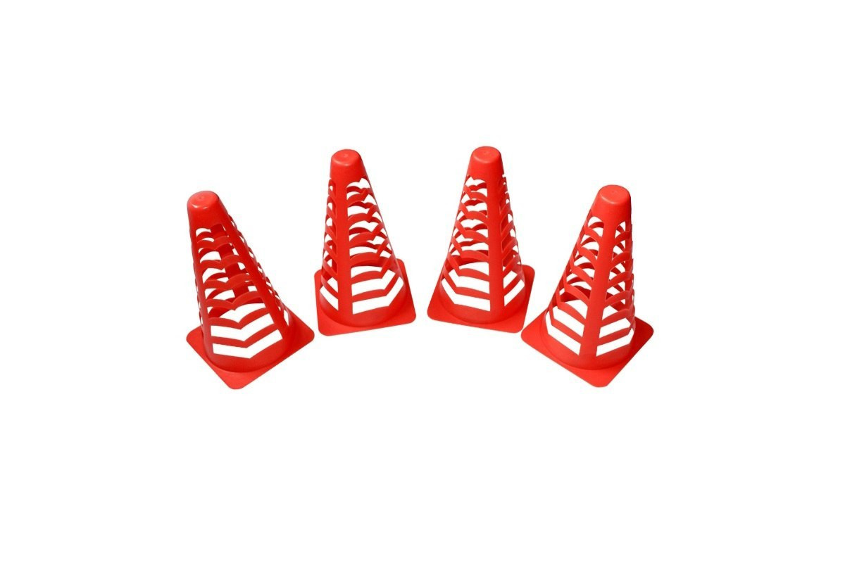 Конуси виготовлені з міцного пластику з отворами у верхній частині для додаткової стійкості. Вони легко встановлюються на будь-яку поверхню, не схильні до перекидання під впливом вітру чи дотиків під час гри.