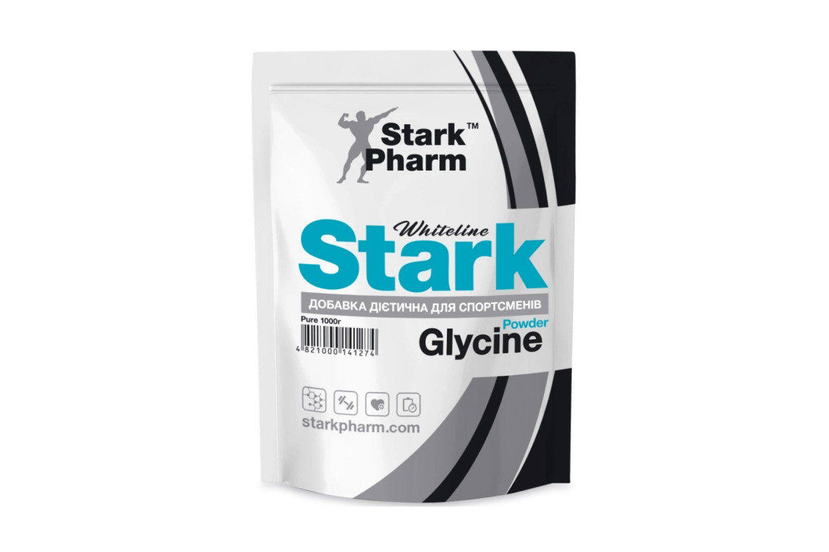 Харчова добавка Stark Glycine - Stark Pharm містить гліцин, є нейромедіаторною амінокислотою, що проявляє паралельну дуалістичну дію. Гліцинові рецептори є в багатьох ділянках головного та спинного мозку. Зв'язуючись з рецепторами (кодовані генами GLRA1, GLRA2, GLRA3 і GLRB), гліцин викликає «гальмуючий» вплив на нейрони, зменшує виділення з нейронів «стимулюючих» амінокислот, таких як глутамінова кислота, і підвищує виділення ГАМК.