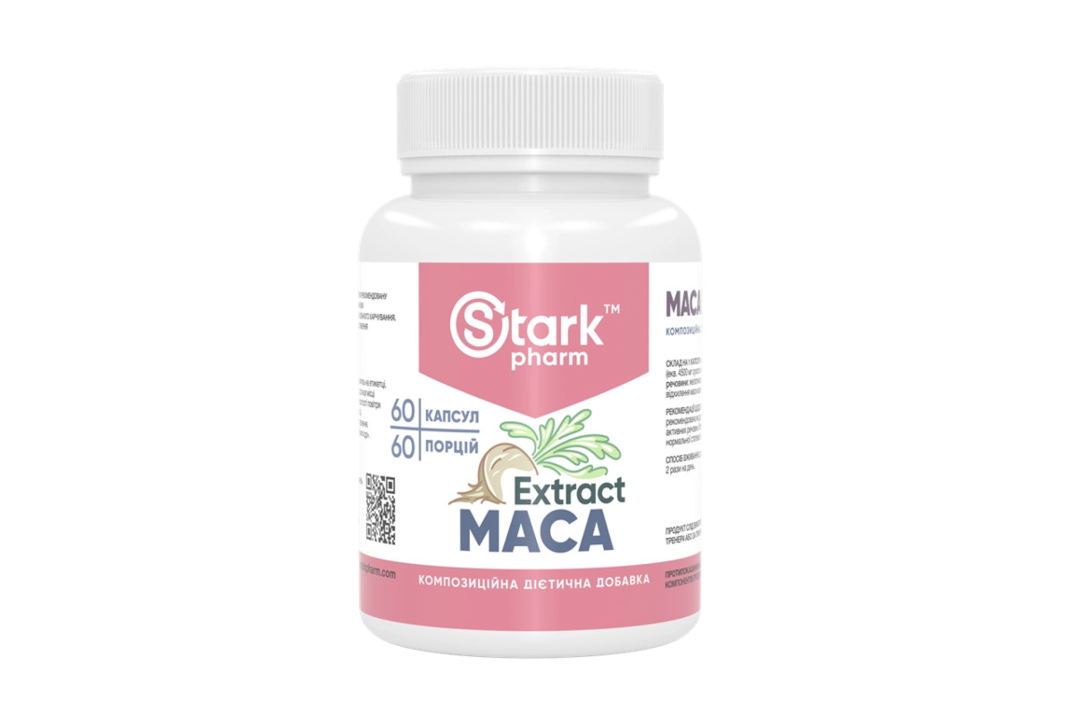 Харчова добавка Stark Pharm - Stark Maca Extract містить екстракт з кореня маки, рослини, яка відома своїми адоптогенними властивостями. Крім того, екстракт маки вважається найпоширенішим природним афродизіаком.