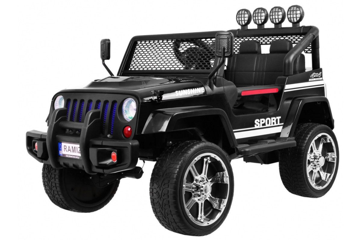 4-колісний привід в дитячих машинках перетворить їх на маленьких гонщиків. Як і належить позашляховику, він повинен працювати надійно навіть у складних умовах. До них відносяться нерівності місцевості, пагорби та висока трава. В таких умовах автомобіль з 4 двигунами по 45 Вт і акумулятором 12 В/10 Ач буде працювати ідеально.