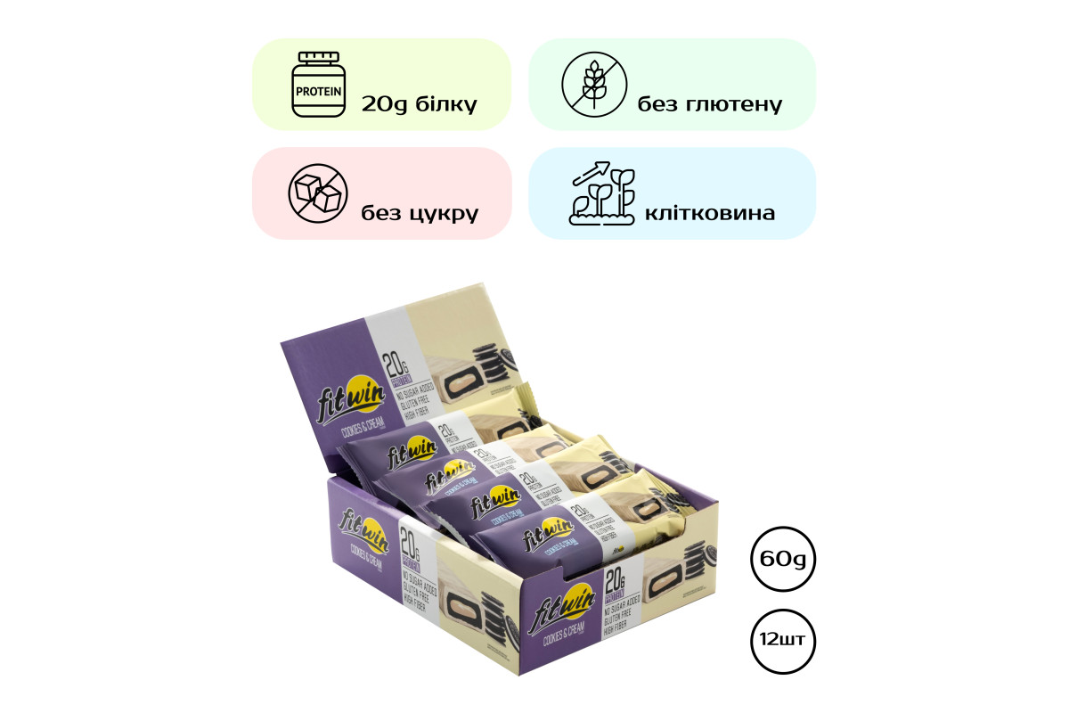 Протеїновий батончик FitWin - 12х60г Кремове печиво