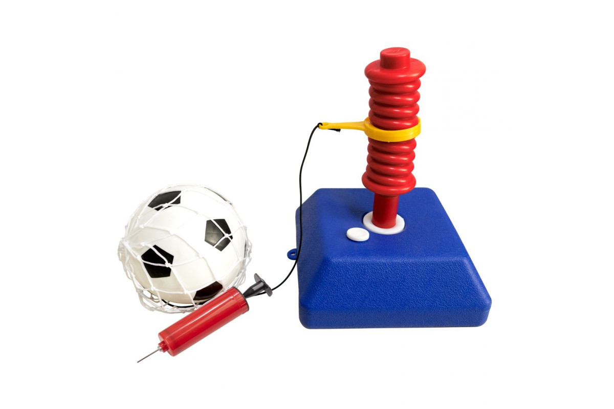 У комплекті — легкий м’яч діаметром 15 см, гумовий шнур довжиною 210 см, сітка для м’яча та насос. Усе необхідне, щоби відразу розпочати тренування.