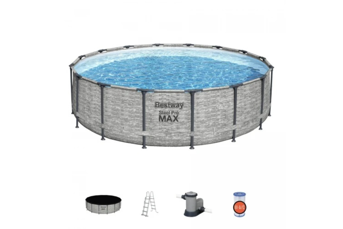 Басейн каркасний 5в1 BESTWAY Steel Pro MAX 488x122 см імітація каменю + аксесуари