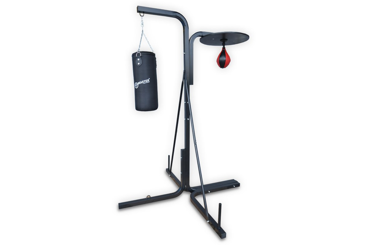 Стійка підставка з боксерською грушею і грушею MASTER - практичне рішення для невеликих приміщень у вашому спортзалі. Чудово підходить для тренувань з боксу завдяки своїй міцності.