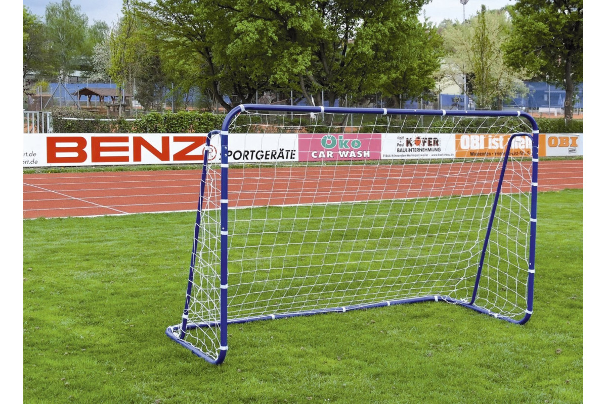 Каркас виготовлений із пофарбованої сталі з додатковими елементами з пластику, що забезпечує надійну стійкість під час гри. Трубки діаметром 3,8 см гарантують міцність і довговічність навіть при щоденному використанні. Сітка й елементи кріплення стійкі до зовнішніх впливів, що робить ці ворота придатними для цілорічного використання на вулиці.