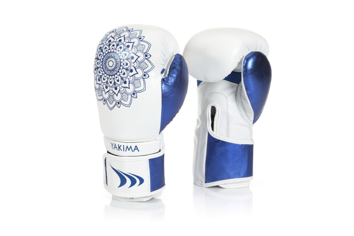 Рукавички боксерські жіночі Yakimasport MANDALA розмір 8 унцій, біло-блакитні