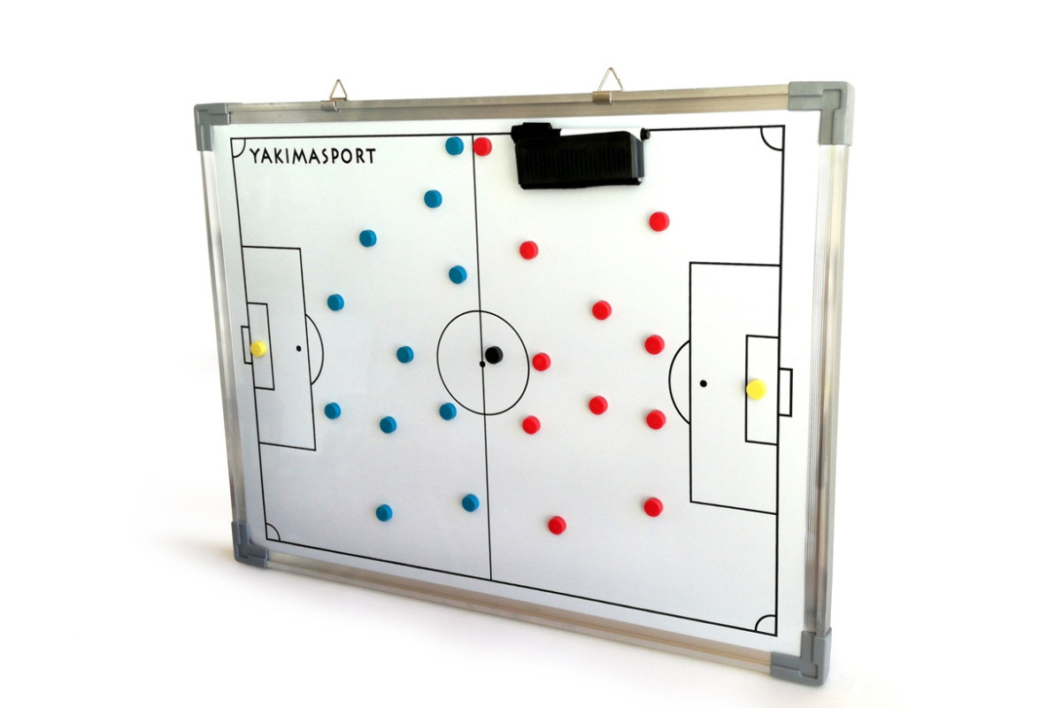 До комплекту входить усе для повноцінної роботи: маркер для записів, губка для стирання та набір магнітів у двох кольорах, що дозволяє легко відокремлювати команди або гравців за ролями. Ці інструменти створюють комфортні умови для проведення тренувань та нарад у будь-якому місці — як у роздягальні, так і під час виїзних матчів.