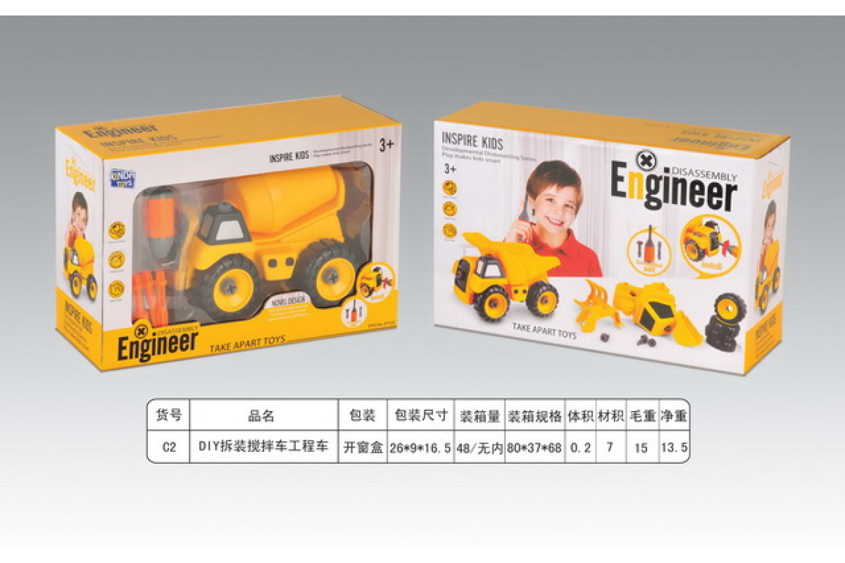 У набір також входить викрутка з 3 змінними насадками - плоскою насадкою , хрестовою насадкою та гайковим ключем , що забезпечує повну функціональність. Крім того, бетономішалка оснащена грушею, що піднімається, опускається і обертається вручну , що додає транспортному засобу реалістичності. Це ідеальний подарунок для маленьких любителів будівництва та автомобілів.