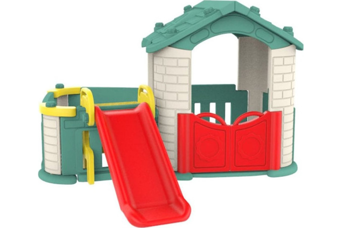 Садовий будиночок 3 в 1 для дітей Зелений дах + гірка + Сад з огорожею