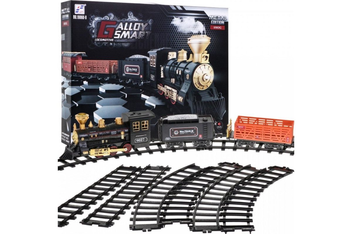 Ми представляємо багатообладнаний поїзд із 3 вагонами та вражаючою функцією диму . Іграшка рекомендована дітям від 5 років і подарує задоволення протягом довгих годин. Крім локомотива , в набір входять пасажирський вагон , вагон для тварин і вантажний вагон з вугіллям. Все це стилізовано під старовинний потяг.