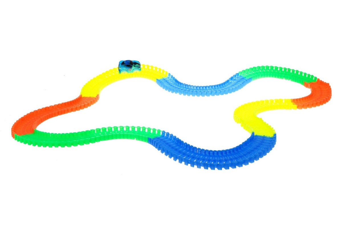Гра за конструктора та гонщика стає ще приємнішою завдяки додатковим функціям. Кожен елемент доріжки виготовлений із пластику неонових кольорів , який буде світитися в темряві під впливом сонячних променів . Автомобіль також має 3 світлодіодні ліхтарі , які підсвічують його під час руху. Тепер все, що вам потрібно зробити, це створити трасу своєї мрії та пробігти її після настання темряви, щоб помилуватися оригінальною грою світла!