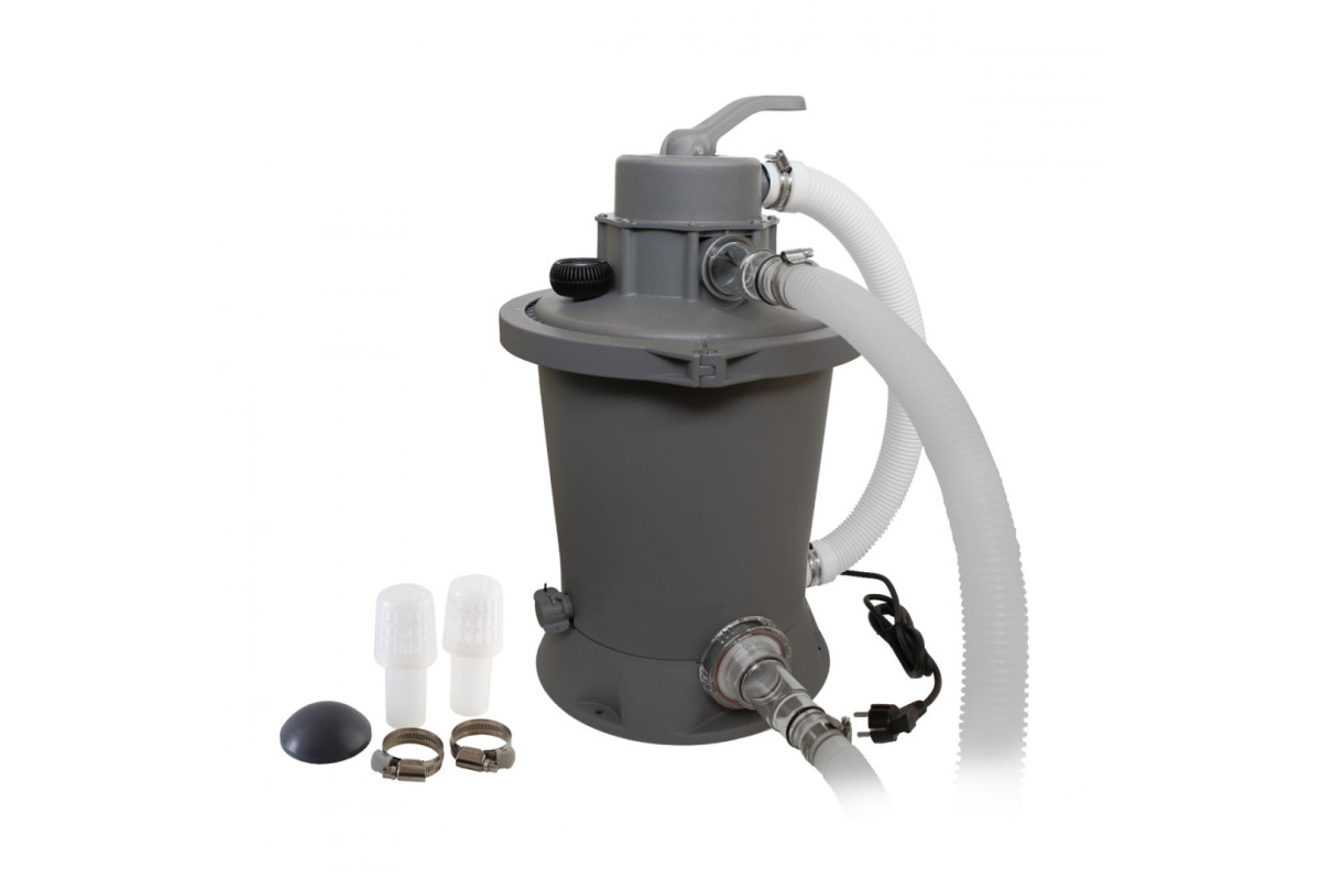 Пісочний фільтр-насос для басейну JILONG для наземних басейнів зі швидкістю потоку 3 028 літрів на годину. 6-ходовий клапан для легкого налаштування оптимальної фільтрації. Рекомендується для басейнів об'ємом до 24 000 літрів.