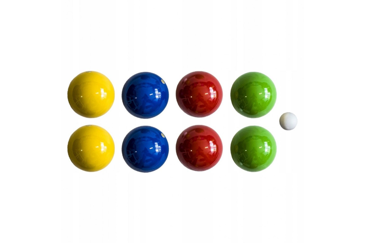 8 лакованих м'ячів з дерева бука - діаметр 75 мм, 4 кольори