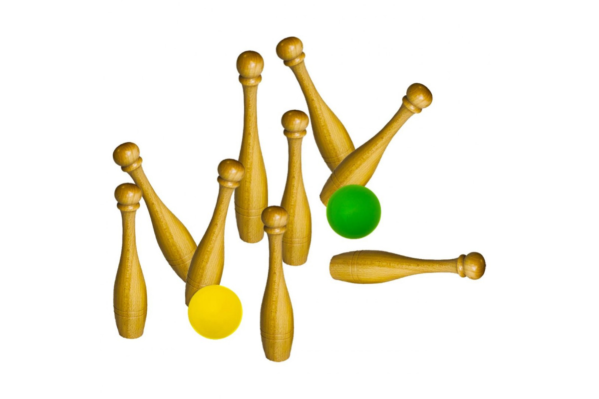 Дерев'яний боулінг від італійської сімейної компанії LUCIO LONDERO - чудова гра для дітей та дорослих. Вона розвиває мануальні навички та спритність гравців. З ними можна грати вдома, в саду, на пляжі, скрізь, де є трохи рівної поверхні і важлива забава.