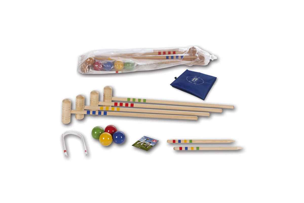 Набір для 4 гравців ідеально підходить як для гри з сім'єю в саду, так і для прогулянок на природі з друзями. Якісний крокет виробництва Італії.