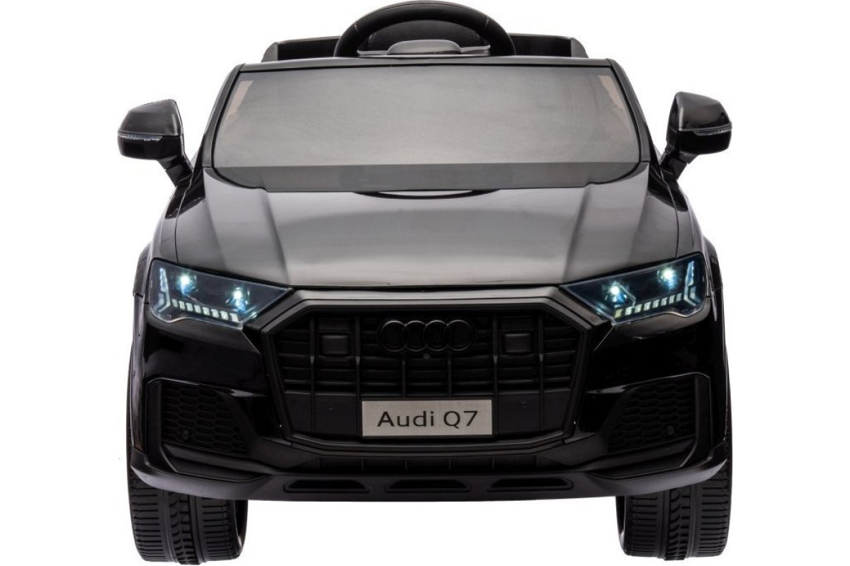 Audi Q7 New Lift оснащений рядом функцій, які гарантують безпечне задоволення. Повільний старт забезпечує плавний старт, виключаючи різкі ривки. Колеса з пінопласту EVA міцні та забезпечують хороше зчеплення з різними поверхнями. Комфорт і безпеку маленького водія забезпечують ремені безпеки та зручне сидіння з чорної екошкіри.