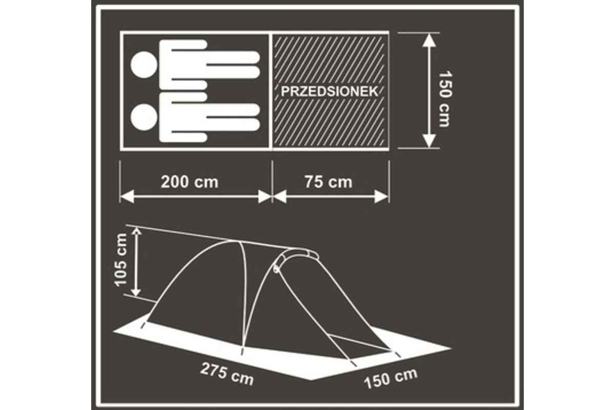 Сімейний намет розміром 275 см х 150 см х 105 см вміщує двох людей! Міцна конструкція і легкість розбирання і складання гарантують, що цей виріб буде ідеально виконувати своє призначення навіть у складних умовах. Ідеально підходить для кемпінгу, подорожей під чистим небом, до озер або в сад. Невелика вага намету (1930 кг) і практична упаковка з ручкою роблять його надзвичайно зручним і легким у транспортуванні.