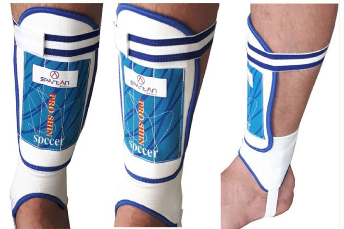 Щитки футбольні для гомілок Spartan Sport L 24 х 15,5 см, біло-сині