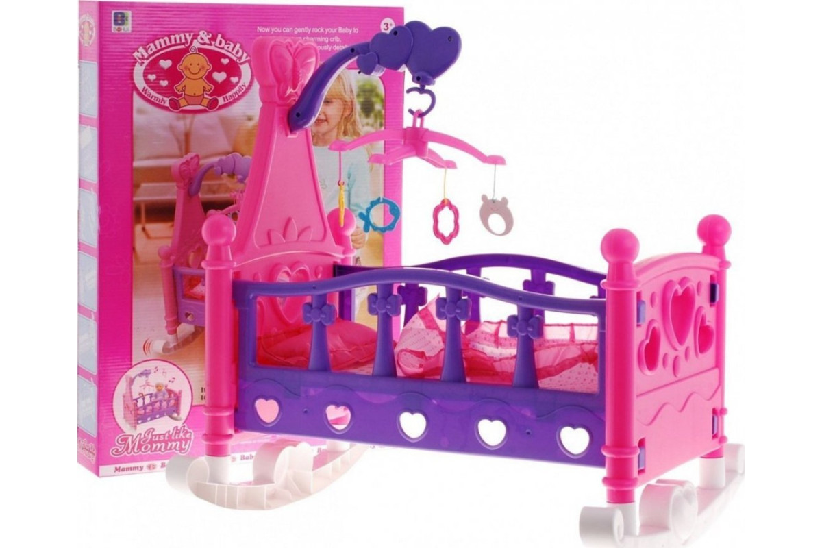У комплект входить подушка і ковдра для ляльки. Над ліжком — карусель із різнокольоровими іграшками на нитках. Елементи можуть обертатися , а встановлений механізм буде видавати заспокійливі звуки , як у справжній колисці.