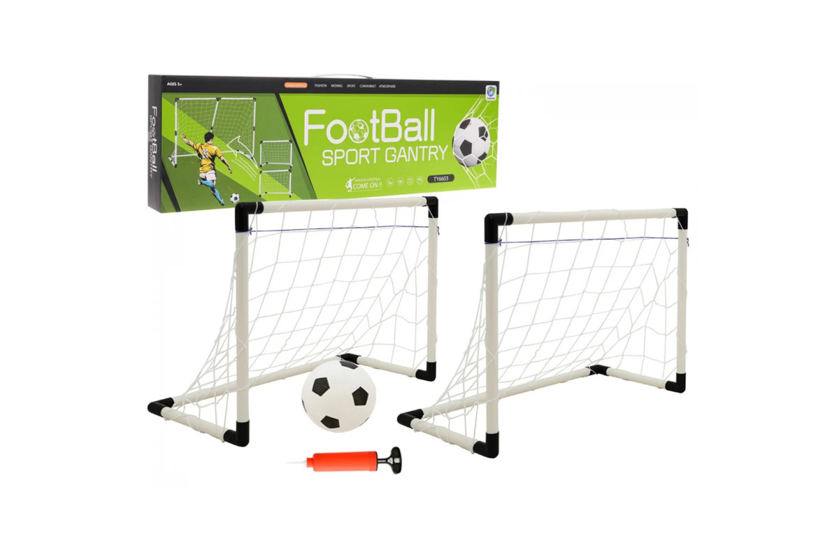 Набір містить усі необхідні аксесуари – сітку, насос та надувний м'яч, завдяки чому діти можуть почати гру відразу після складання воріт. Версія з одними великими воротами ідеально підходить для тренувань на точність або виконання штрафних ударів, тоді як двоє менших воріт – для традиційних командних видів спорту. Набір легко переносити та складати, що дозволяє швидко підготуватися до гри в будь-якому місці.