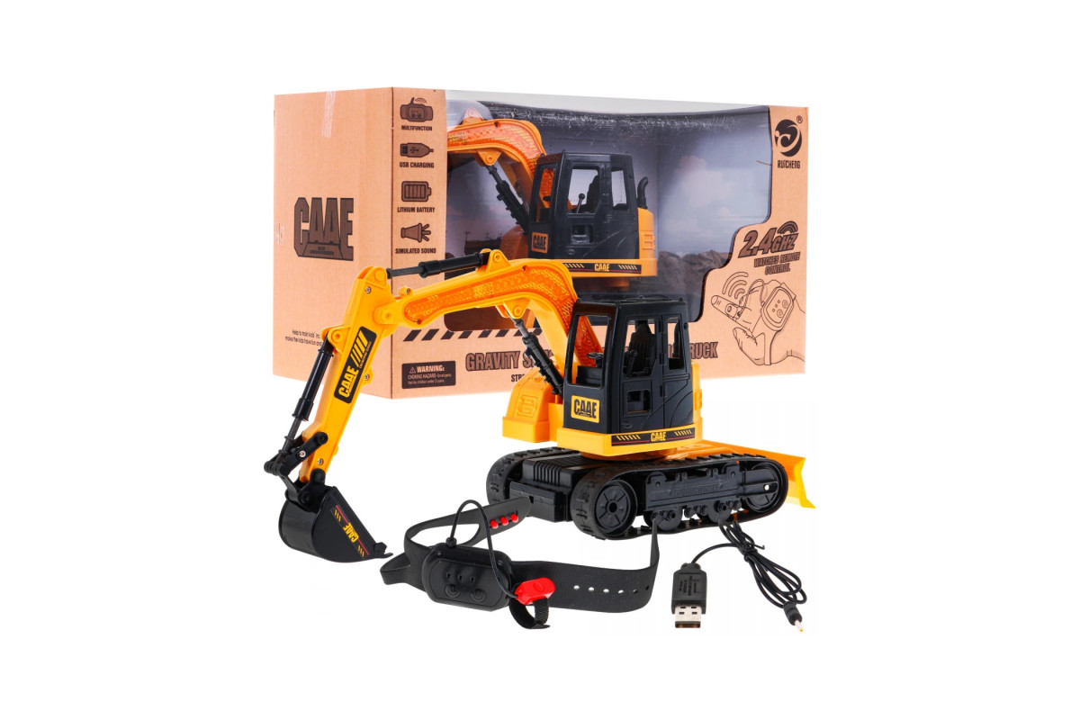 Екскаватор на ручному керуванні - іграшка для дітей старше 6 років . Розумна технологія використовує годинник із гравітаційним механізмом і частотою 2,4 ГГц, щоб автомобіль повторював рухи дитячої руки.