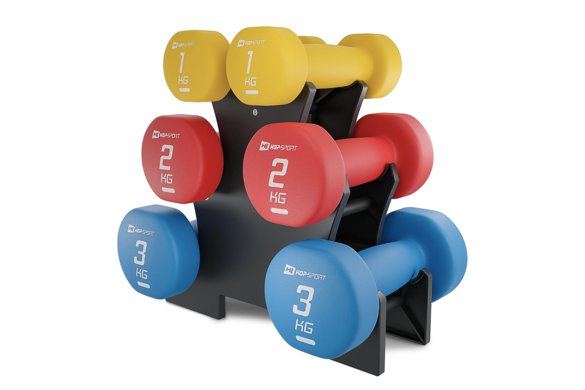 Зануритеся в світ енергії та сили з найновішим набором круглих фітнес-гантелей з підставкою вагою 12 кг! Придбавши набір гантелей Hop-Sport, ви отримуєте не лише фітнес тренажер для удосконалення своєї фізичної форми, але й ключ до здорового, активного способу життя. Завдяки різноманіттю вправ з гантелями ви зміцните м'язи і отримати струнку фігуру. Кожна гантель має ідеально збалансовану вагу, що дозволяє вам точно налаштувати інтенсивність вашого тренування. Крім того, практична підставка допоможе організувати простір для тренувань, щоб ваші гантелі завжди були під рукою. Чавунні гантельні пари вагою 1 кг, 2 кг і 3 кг підходять для різних форм аеробних тренувань, йоги, пілатесу, ізолюючих тренувань, а також тренувань на розтяжку і релаксацію з невеликим навантаженням. Правильно профільована рукоятка і неопренове покриття забезпечують безпеку і комфорт під час кожного тренування.