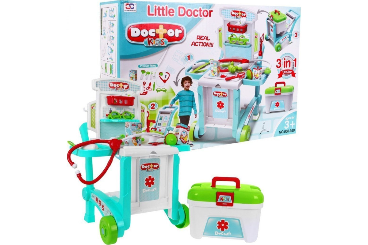 Величезний медичний набір 3 в 1 — чудовий подарунок для 3-річної дитини та дітей старшого віку . Залежно від віку та зросту дитини ви легко трансформуєте набір у столик або 2 варіанти коляски . Наймолодші відчують себе справжніми лікарями.