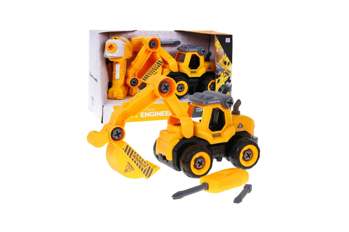 Жовтий екскаватор-розбірник в наборі з інструментами - пропозиція для дітей від 3 років, які люблять майструвати. Маленькі шанувальники будівельних машин також будуть раді, коли зможуть пограти з екскаватором абсолютно по-новому. Вони будуть супроводжуватися звуковими ефектами .