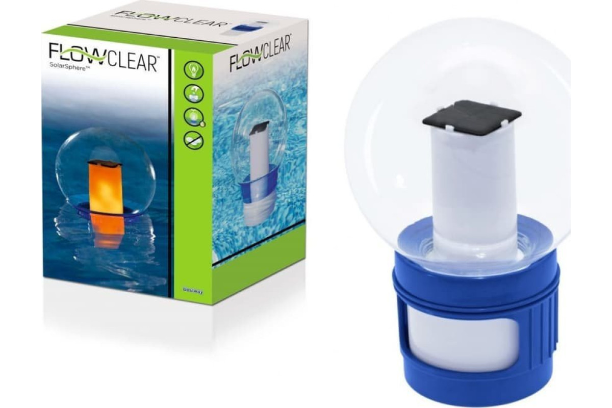 Верхня частина диспенсера, виконана з прозорого пластику, виконує не тільки естетичну функцію, але і практичну — плаваючи над поверхнею води, вона красиво розподіляє світло світлодіодної лампи. Ця незвичайна функція не тільки додає чарівності вечірнім купанням, але й дозволяє контролювати рівень хімічних речовин у басейні навіть у темряві. Крім того, світлодіодна лампа працює завдяки вбудованій сонячній батареї, яку потрібно заряджати протягом дня на сонці, забезпечуючи до 6-8 годин безперебійної роботи.