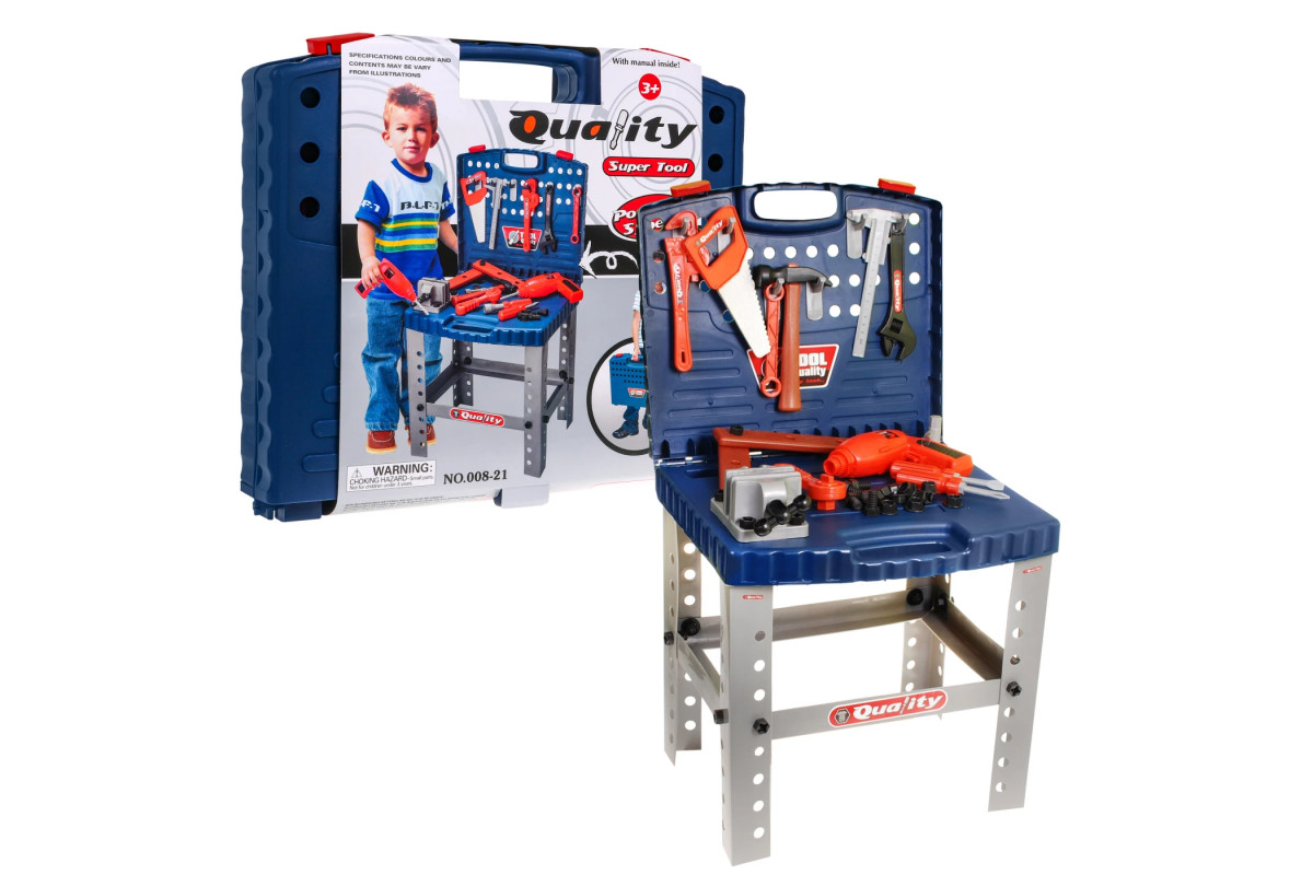 Барвиста майстерня 2 в 1 стане цінним подарунком для дітей від 3 років . У багатий комплект можна грати двома способами. При необхідності всі аксесуари можна скласти у валізу зі зручною ручкою для перенесення . Тоді валізу можна швидко перетворити на верстак і розмістити будь-де.