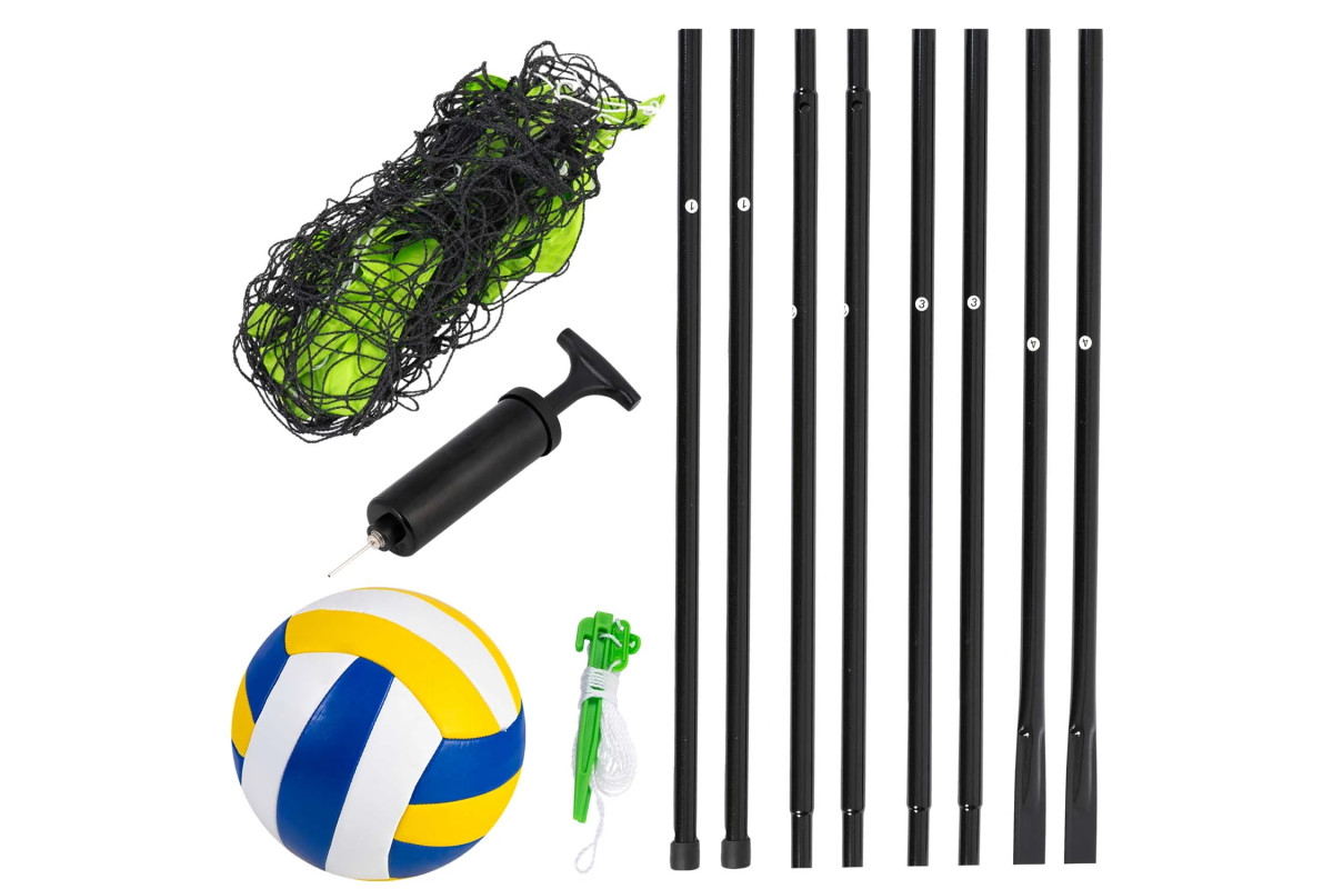 Регульована висота стійок дозволяє грати у волейбол та бадмінтон.