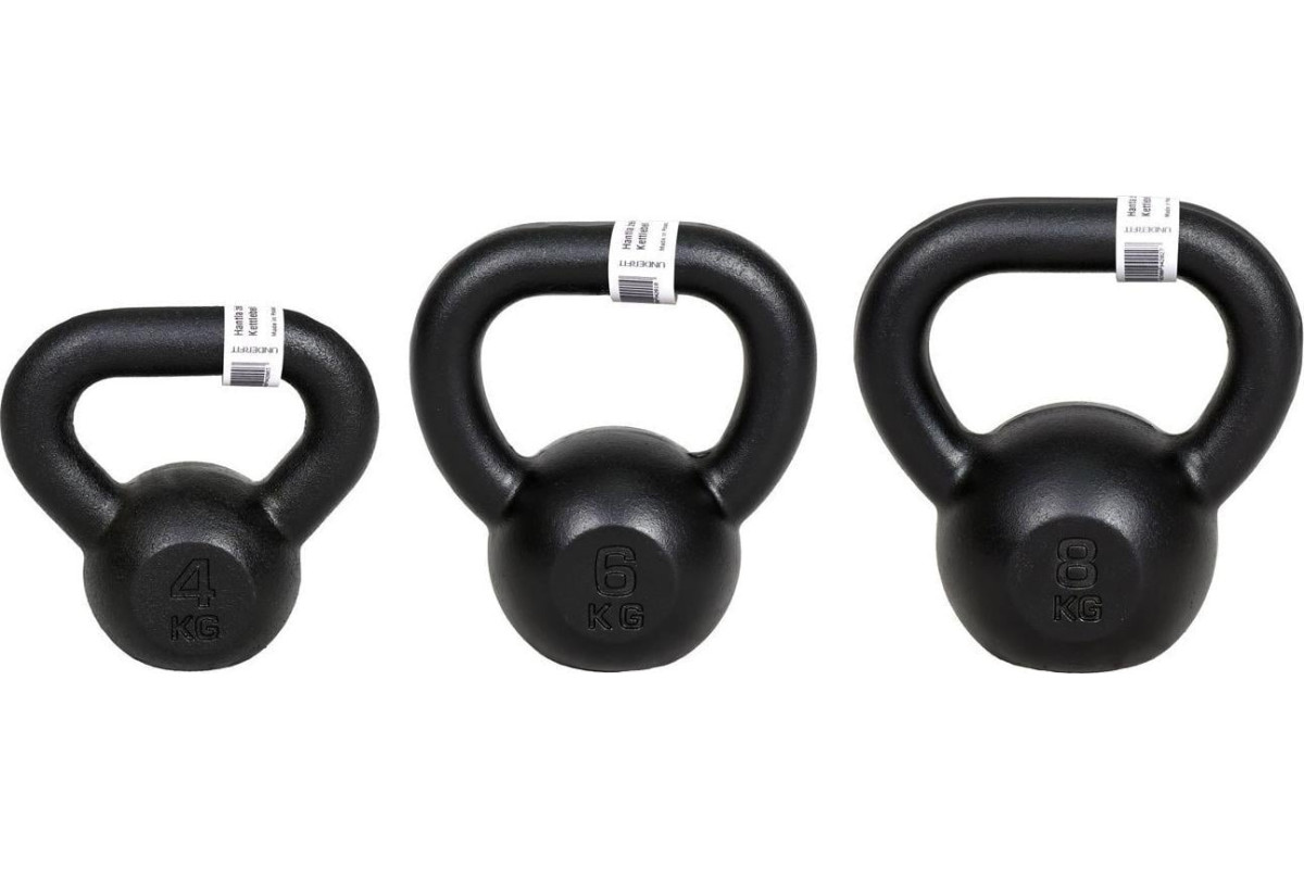 У набір з 3-х гир UNDERFIT входять гантелі вагою: 4 кг, 6 кг, 8 кг. Загальна вага всього набору 18 кг. Такий великий вибір обладнання дозволяє займатися одночасно багатьом людям. Набір відмінно підійде як обладнання для тренажерних залів або фітнес-клубів.
