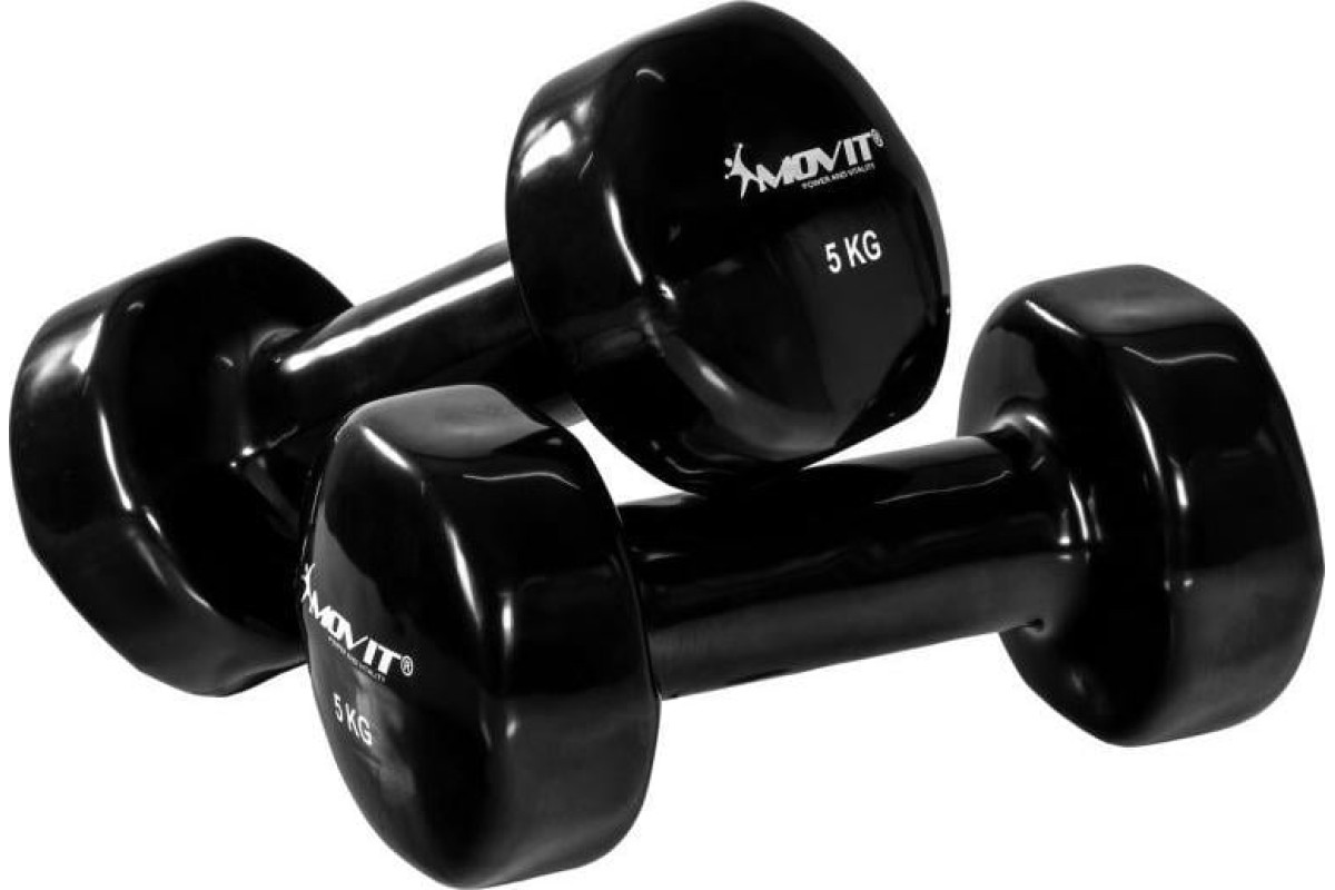 Гантелі вінілові Movit 2 х 5 кг. З набором вінілових гантелей Profi MOVIT з 2 штук ви ідеально підготуєтеся до індивідуальних зайняти аеробікою або фітнесом у студії чи вдома. Гантелі є одним з найефективніших силових видів спорту, які зміцнюють м'язи та водночас мають естетичний профіль. На додаток до позитивного аспекту для здоров'я правильних вправ, вони допомагають розщеплювати жири швидше, ніж інші види спорту.