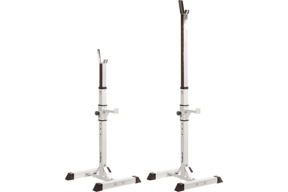 Міцна сталева конструкція з м'якими ніжками та сімома опорами забезпечує якісне розміщення ваги. Ваші гирі нарешті зайняли постійне місце у вашому домашньому тренажерному залі та завжди під рукою. Примітка: гантелі не входять. Технічні дані: висота верхньої полиці: 47,5 см - 72,5 см (регулюється в 6 положеннях) висота нижньої полиці: 105 см - 172 см (регулюється в 14 положеннях) розміри стійки для штанги: 52 х 53 х 105 -172 см (довжина х ширина х висота) максимальна вантажність верхніх полиць: 400 кг максимальна вантажність нижніх полиць: 500 кг внутрішній діаметр: приблизно 30 мм матеріал: сталь, білий колір Комплектація: 1 набір підставок для гантелей