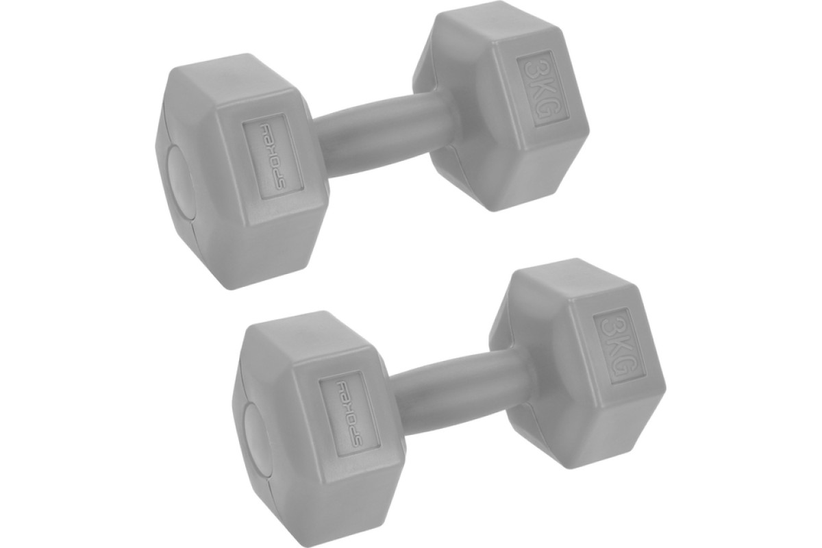 Набір шестигранних гантелей Spokey MONSTER 2x 3 кг. Гантелі шестикутної форми, що забезпечує стабільність при виконанні різних вправ, наприклад, віджимань з гантелями, але також запобігає вільному переміщенню тягарів по підлозі,