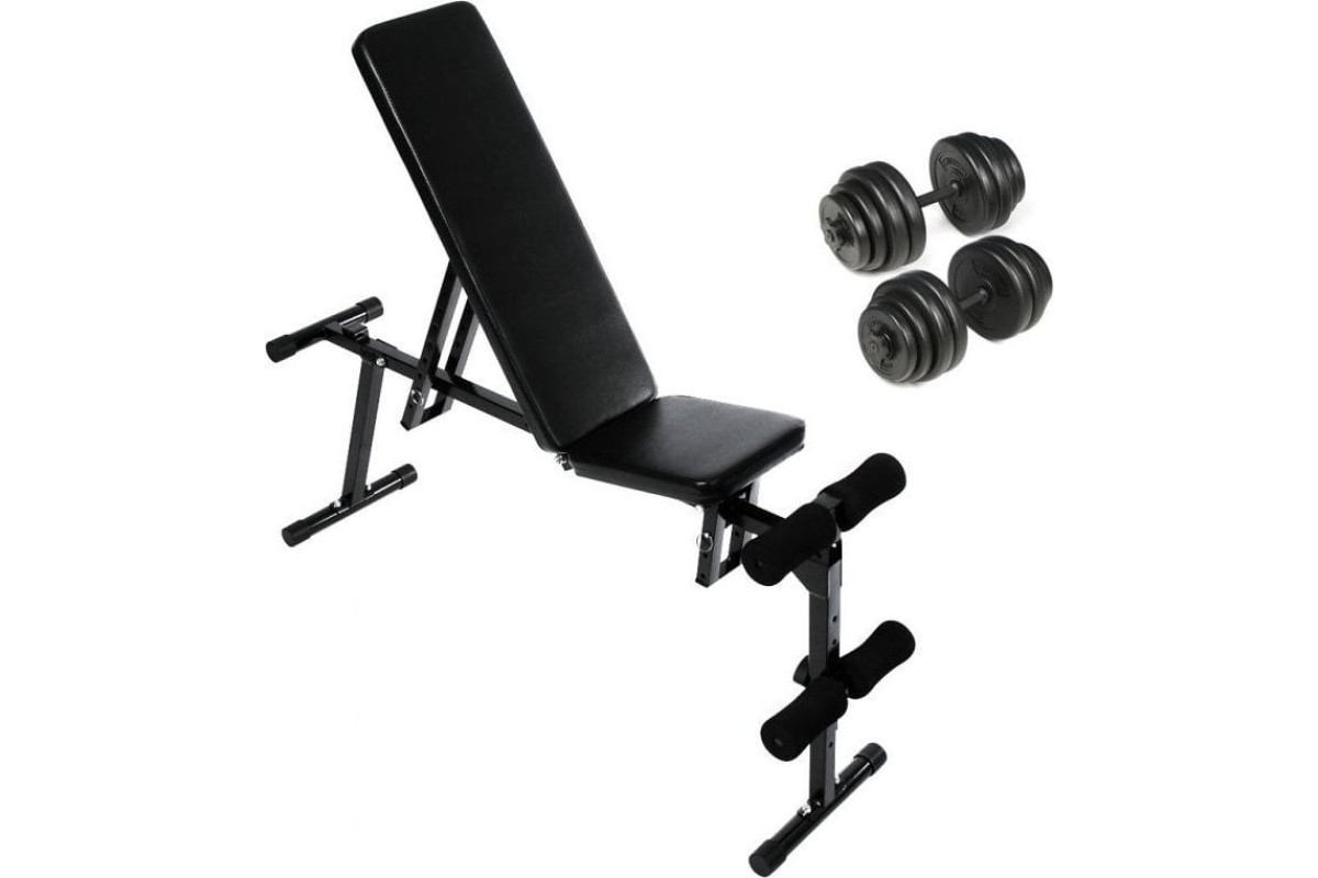 Тренування з гантелями - це не тільки ефективний спосіб спалювання жирової тканини, але і відмінний засіб для зміцнення і формування різних частин тіла. Таке поєднання обладнання дозволяє проводити ефективні тренування в домашніх умовах. Лава для жиму лежачи оснащеною функцією зміни кутів, що забезпечує гнучкість тренувань. Лаву можна швидко скласти та зберігати, заощаджуючи місце.