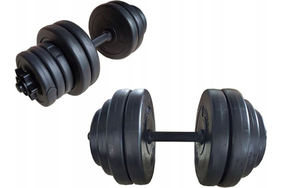 Наповнення гантелей з цементу забезпечує відповідну вагу і стабільність, що є ключовим під час інтенсивних тренувань. Зовнішнє покриття з пластику впливає на довговічність продукту і комфорт використання, що робить набір не тільки функціональним, але і зручним у повсякденному використанні.