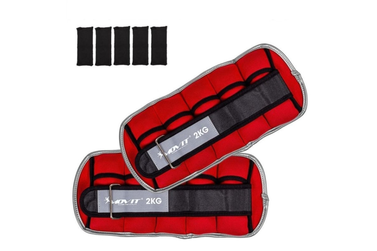 Неопренові манжети MOVIT містять 5 знімних нейлонових обважнювачів вагою 384 грами, наповнених залізним піском, які дозволяють індивідуально встановлювати інтенсивність тренувань. Сухі блискавки дозволяють підігнати манжети під індивідуальні розміри тіла. Застібки-липучки та кант зроблені зі сітловідбивального матеріалу для кращої видимості та більшої безпеки в темряві. Це робить манжети ідеальними для походів, бігу, гімнастики, реабілітації тощо.