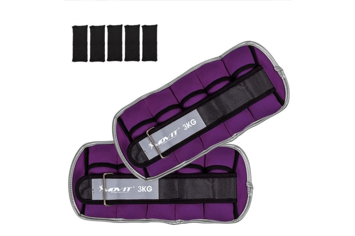 Неопренові манжети MOVIT містять 5 знімних нейлонових обважнювачів вагою 584 грами, наповнених залізним піском, які дозволяють індивідуально регулювати інтенсивність тренувань. Сухі блискавки дозволяють підігнати манжети під індивідуальні розміри тіла. Застібки-липучки та кант зроблені зі сітловідбивального матеріалу для кращої видимості та більшої безпеки в темряві. Це робить манжети ідеальними для походів, бігу, гімнастики, реабілітації тощо.