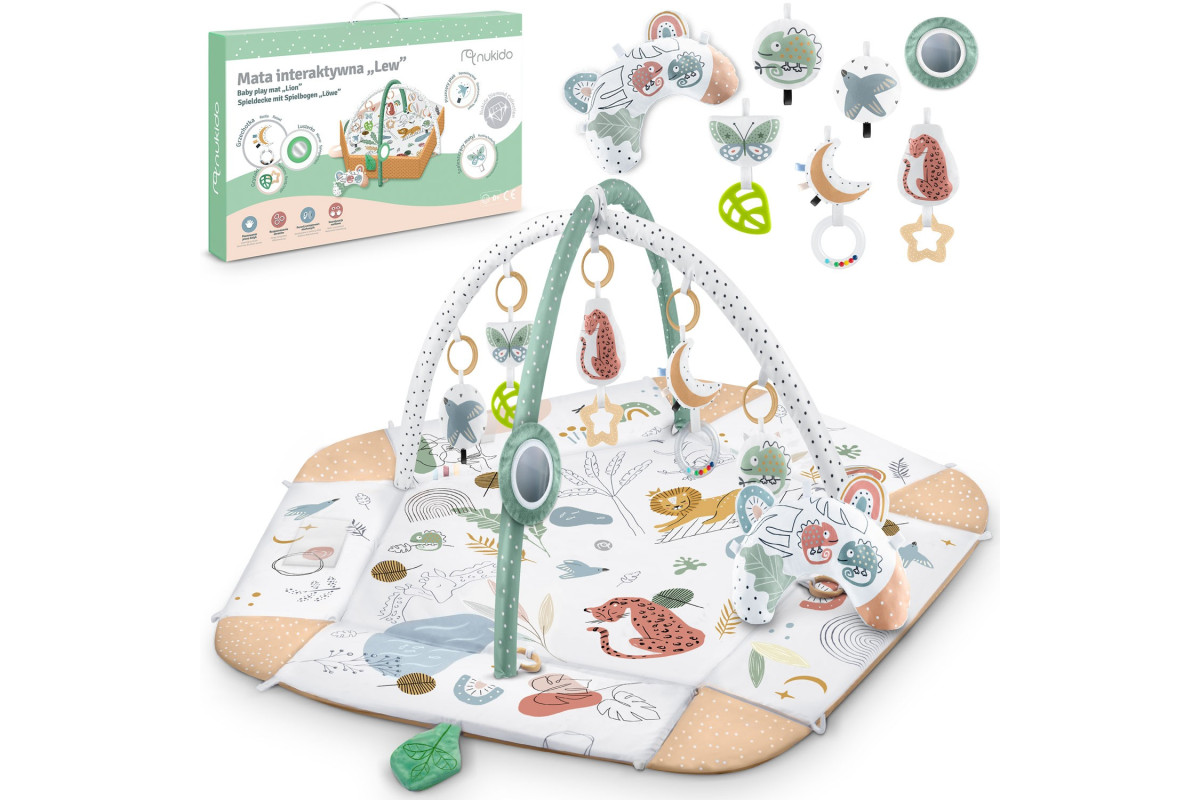 Розвивальний килимок 100 x 100 см Лев Nukido, легко чиститься і приємний на дотик, можна розкласти в різних комбінаціях, 7 багатофункціональних оригінальних іграшок, подушка БЕЗКОШТОВНО.